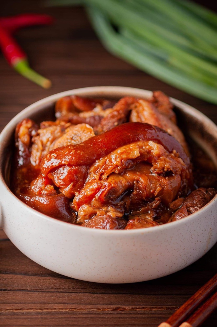 燉煮入味的豬腳油油亮亮,肥瘦完美比例穠纖合度,每一口都像是在舌尖跳舞一般,Q彈不膩口,就算不敢吃豬腳跟肥肉,也會愛上的「膠原蛋白」。